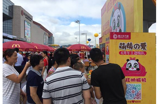 Sunkin Oriental Castle, located in the Heilongjiang middle road of Chengyang section, a set of dining, entertainment, shopping and parent-child interaction as one of the commercial complex, July 8-10, Sunkin Oriental Castle dumping the power of the store to offer customers A "Meng Meng's love," the theme of the fourth anniversary of hi lying, three days to attract traffic has exceeded 30 million passengers, refresh the previous anniversary open file records