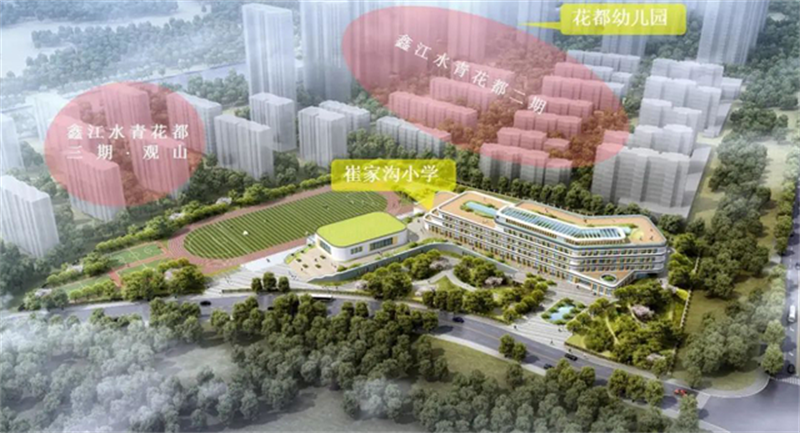 Children in primary school are in a key period of cultivating interests and good quality. The Cuijiagou Primary School next to the community is just like a magic castle beside the forest with the background of green mountains. The school has modern streamlined teaching building, green sports ground, colorful art and sports hall, leading children to know the wonderful world with its wide space and soft colors.