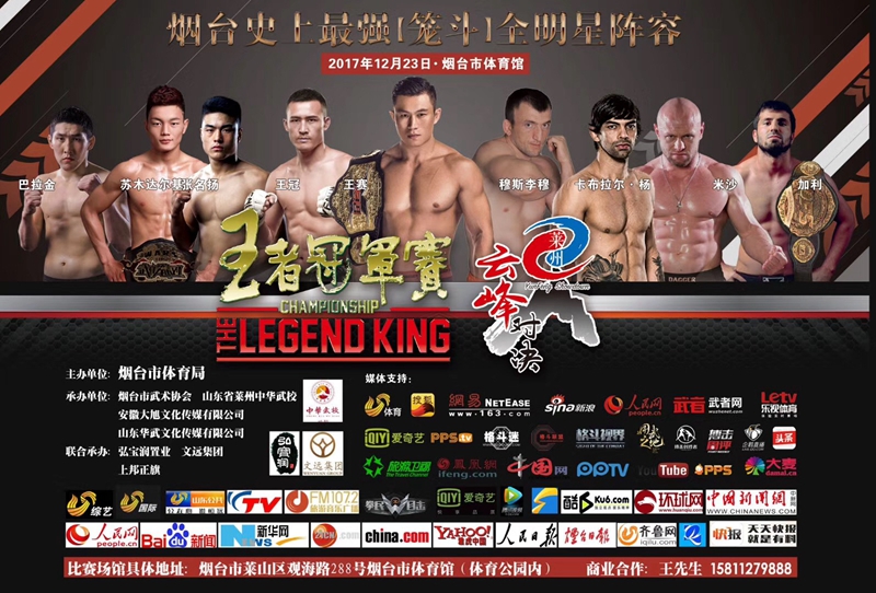 2017年12月23日,由山東省煙臺(tái)市體育局主辦,萊州中華武校和安微大旭文化傳媒有限公司承辦的,頂級(jí)MMA綜合格斗賽事“王者冠軍賽-云峰對(duì)決”,在煙臺(tái)為廣大觀眾帶來了一場國際水準(zhǔn)的MMA綜合格斗大戲,14場激戰(zhàn),國際頂尖實(shí)力的中外名將捉對(duì)廝殺,來自全國各地的近5000名觀眾現(xiàn)場觀看比賽,比賽采用觀眾最刺激的籠中格斗,廝殺激烈,精彩不斷,引得觀眾情緒激昂,火熱爆棚。