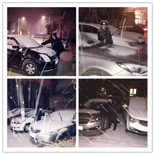頂著風(fēng)雪,為業(yè)主立起汽車的雨刷;
