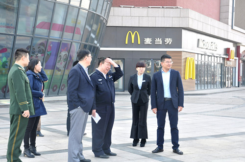 為貫徹落實市政府對于“加快實施國際城市戰(zhàn)略推進全市觀光購物餐飲場所品質提升”工作的要求,3月13日上午,青島市城陽區(qū)副區(qū)長于延濤,帶領城陽區(qū)公安局李局長及區(qū)安監(jiān)局、商務局、衛(wèi)生所等相關部門負責人一行,蒞臨青島鑫江東方城,進行工作調研。鑫江集團副總經(jīng)理趙文博,鑫江東方城副總經(jīng)理邱晶及相關部門負責人陪同檢查。
