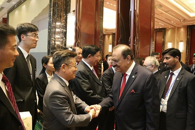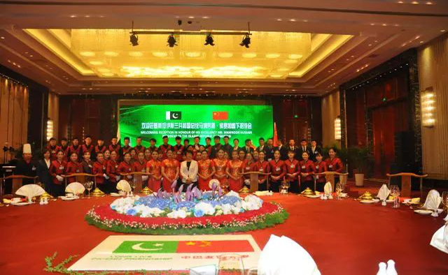 巴基斯坦總統(tǒng)馬姆努恩·侯賽因(Mr.Mamnoon Hussain)與中巴友協(xié)、中國(guó)國(guó)際文化傳播中心貴賓握手道別