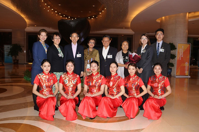 圖為酒店總經(jīng)理張曉東女士和酒店副總經(jīng)理呂功濤先生接待原聯(lián)合國(guó)副秘書長(zhǎng)沙祖康大使及夫人