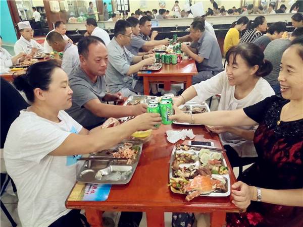 公司領(lǐng)導(dǎo)特意安排包括螃蟹、大蝦、餃子、各種飲料等在內(nèi)的豐盛的午餐晚餐,增強(qiáng)了大家對企業(yè)的認(rèn)同感、歸屬感。
