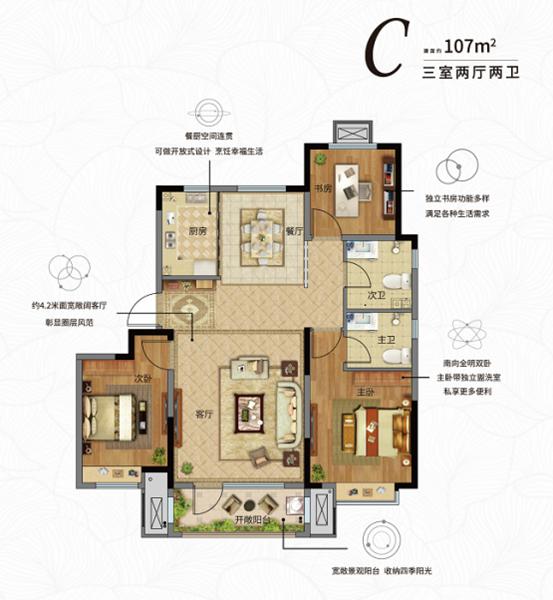 花漾里匠心打造建面約80-85㎡舒適兩居室和約97-107㎡全能大三居,均打造南北通透全明戶型,坐享清風明月,一覽室外風華,盡享舒適人生。
