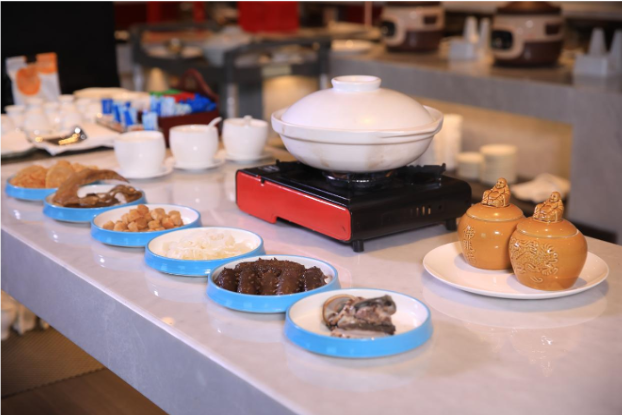 鮑魚、海參、魚肚、花菇,熬制湯底,每種食材都能自成一道美味珍饈,集合在一起,滋味愈發(fā)唇齒留香。