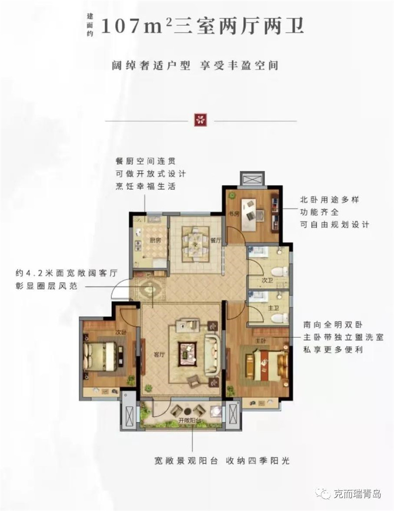 鑫江·花漾里在戶型設(shè)計上,沒有追求大戶型,小高層85-97㎡,洋房97-118㎡,樓王也沒有搞特殊化,就是118㎡三室兩廳兩衛(wèi)戶型,這樣的戶型設(shè)計,結(jié)合15000元/㎡的銷售均價,用意很明顯,就是要打造一座活力社區(qū),讓年輕人以承受得起的總價,享受高品質(zhì)的生活。