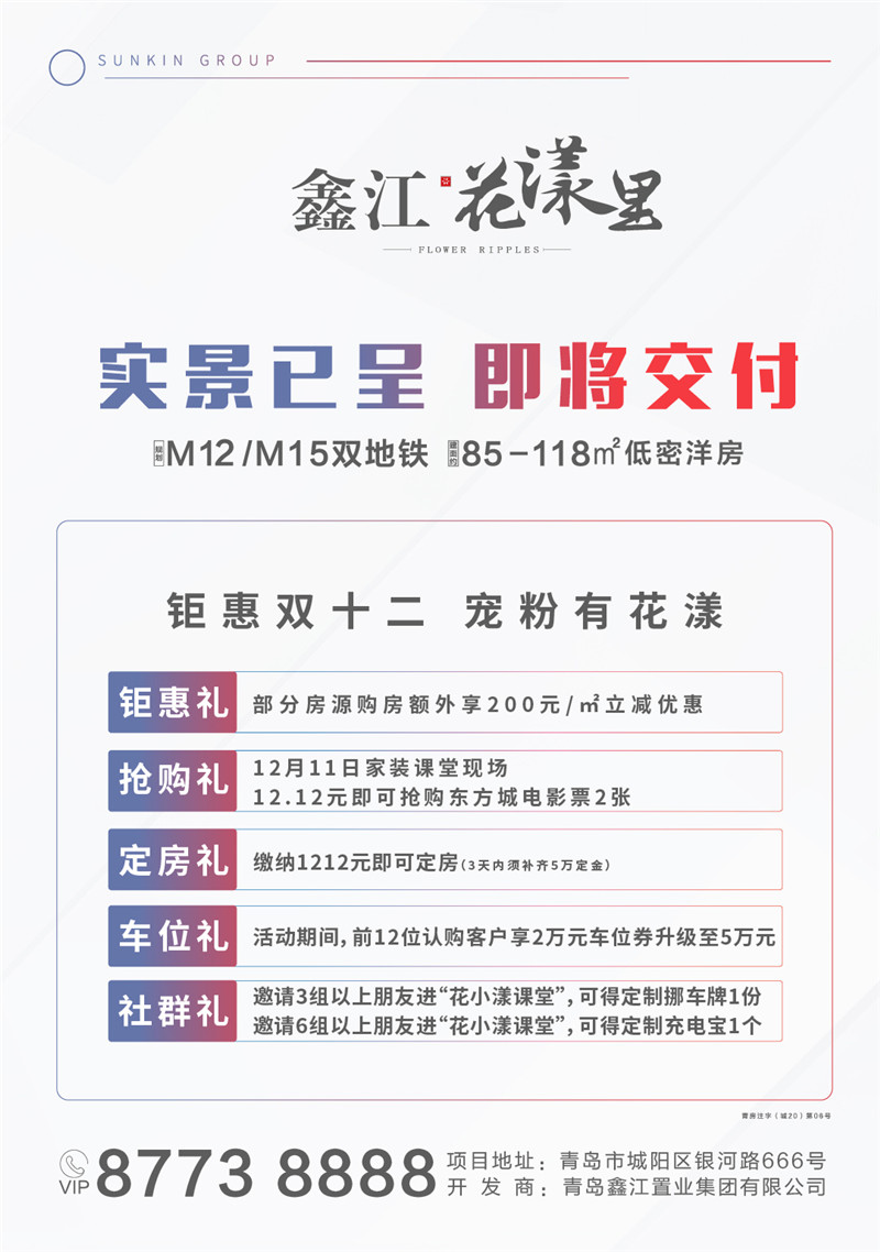 為敬謝一城厚愛,鑫江置業(yè)年末獻禮,特推出“品質(zhì)交付季|12.12年終盛典”活動,年終抄底鉅惠,繽紛福利,火爆來襲!