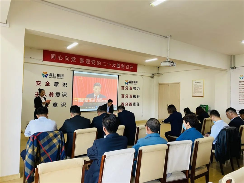 鑫江集團(tuán)高度重視黨的二十大精神學(xué)習(xí)宣傳貫徹工作,集團(tuán)黨支部和工會通過周密的安排,在集團(tuán)及各個分公司組織黨員職工干部及廣大員工收看黨的二十大開幕會。