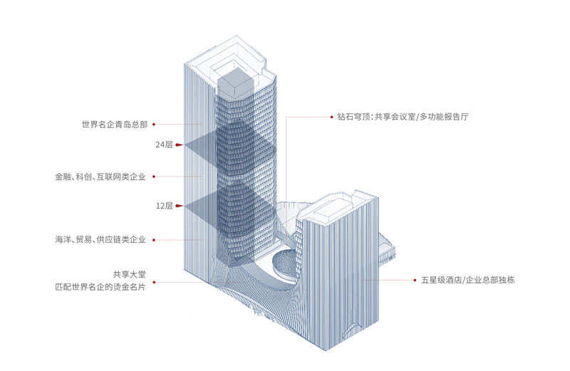 約2500㎡青島在建最大最高共享大堂,約18.8m高挑空,約58.8m無(wú)柱大跨度