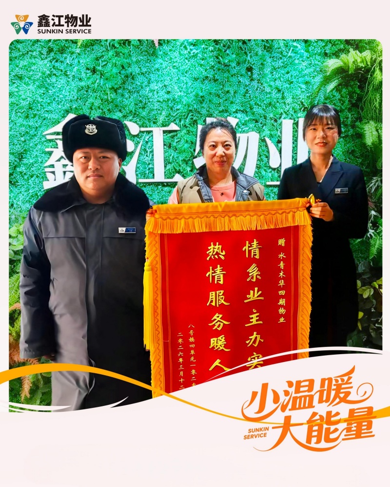 業(yè)主對鑫江物業(yè)快速響應、認真負責、高效尋物的服務和工作態(tài)度贊不絕口,特贈錦旗表達感謝。